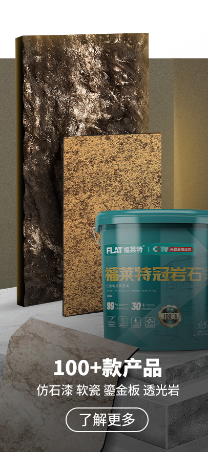 福萊特建材二十多年專注:仿石漆、軟瓷、鎏金板、透光巖等新型建筑裝飾材料,注重環保與可持續發展,為用戶提供健康、安全的建材產品,深受消費者喜愛廠家之一。